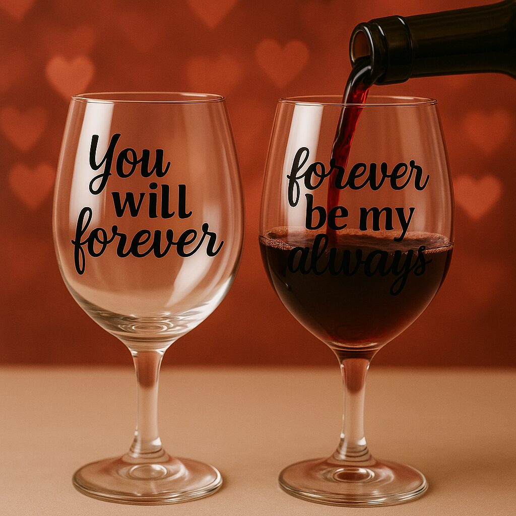 Juego de dos copas de vino de 15 oz personalizables con vinilo